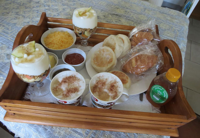 There are three cottages on the property. In the cottages we provide teas, filter coffee, milk, homemade rusks, a choice of cereals and a complimentary fruit bowl included in the price. If you prefer, I can supply a healthy continental or a hot breakfast in the cottage on request.