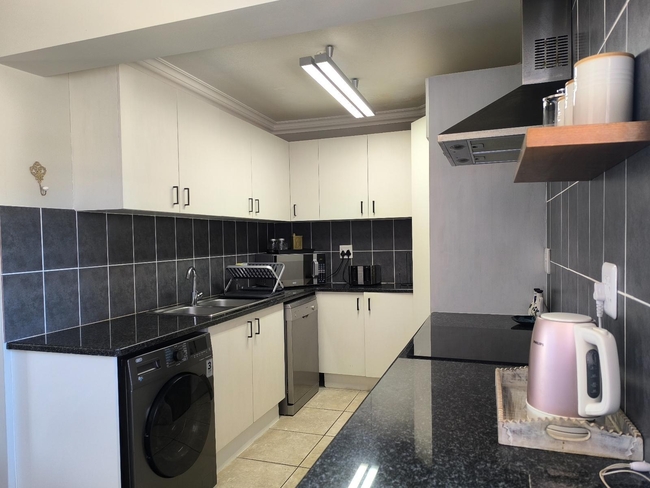 The open-plan living and dining area extends onto a private balcony furnished with outdoor seating, an ideal spot to enjoy the coastal atmosphere. With its contemporary interior and central location, the apartment serves as an excellent base from which to explore Plettenberg Bay, its surrounding attractions, and the lively town centre.