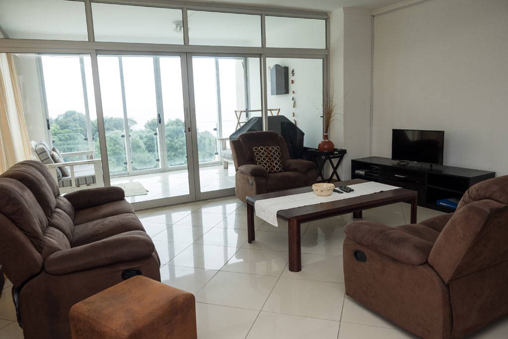 The living area is open plan and has a TV with DStv and a DVD player. There is a also dining table where you can enjoy your meals.