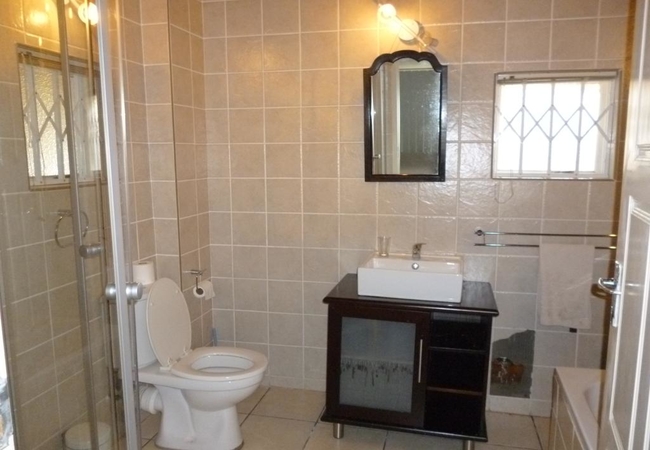 Room Two is furnished with a double bed and three single beds (family unit with 2 inter leading rooms, sharing a bathroom). All rooms are air conditioned, have tea / coffee facilities, a bar fridge, a TV with DStv / satellite and free Wi-Fi. Rooms are non-smoking; however smoking areas have been designated.