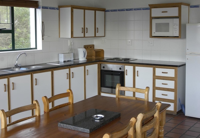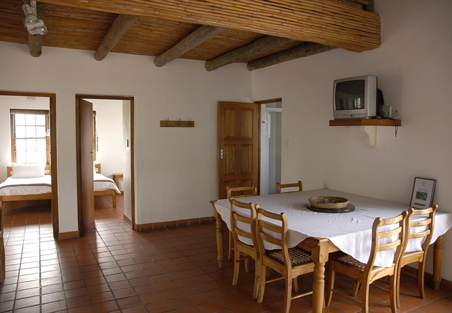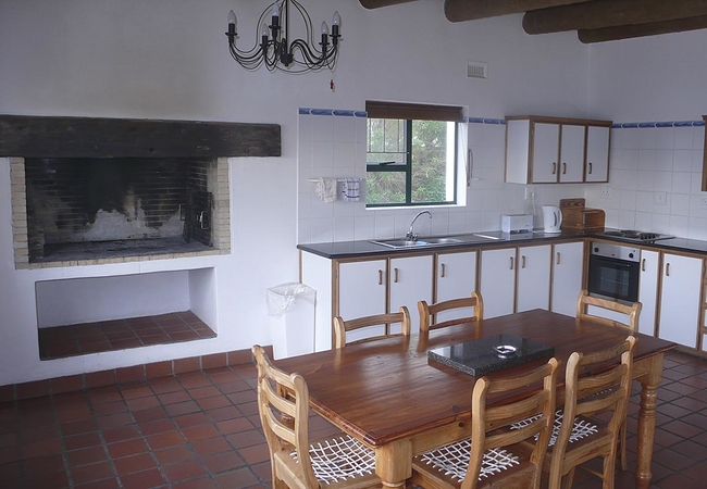 This spacious cottage has a large lounge and dining area with a fireplace and fully equipped kitchen. There are 2 bathrooms, and one is en-suite. The enclosed courtyard has a barbecue area under a thatched lapa.