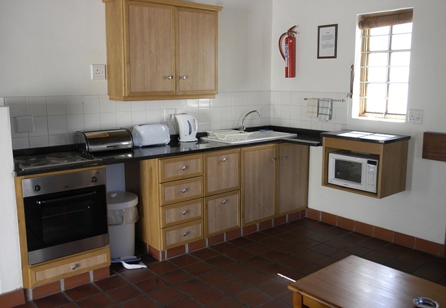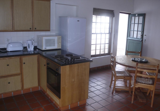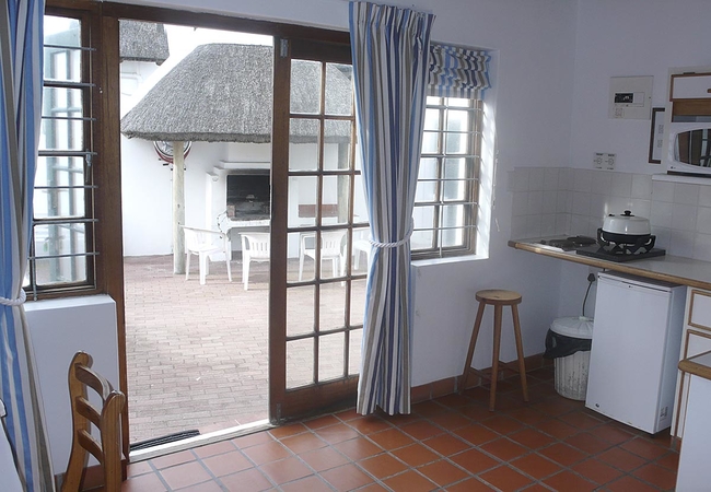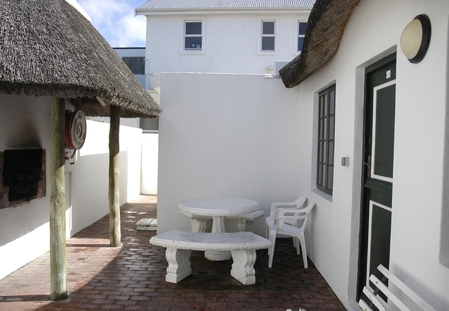 This comfortable ground floor cottage has both a bath and a shower. The enclosed courtyard is perfect for dogs or children. There is a fireplace indoors and there is a barbecue area under a thatched lapa outdoors.