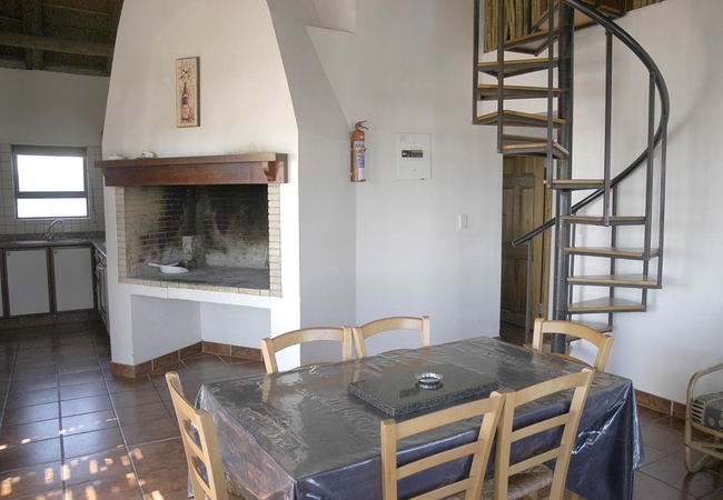 This free standing cottage is perfect for families. It has an enclosed courtyard perfect for dogs or children. The large open-plan lounge and dining area has a fireplace. There is a barbecue area under a thatched lapa.