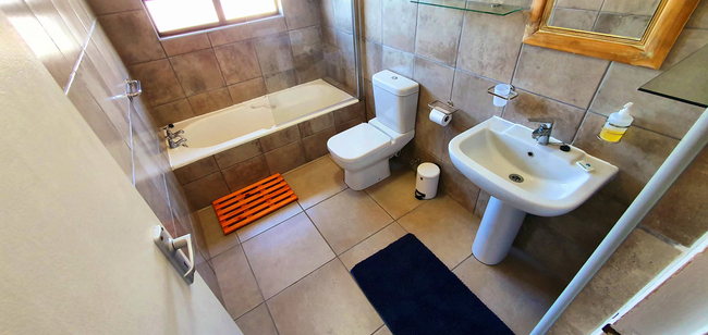 The apartment also includes a fully equipped kitchen, a comfortable lounge area, and a TV with DStv. A private balcony and a gas braai are available for guests to enjoy.