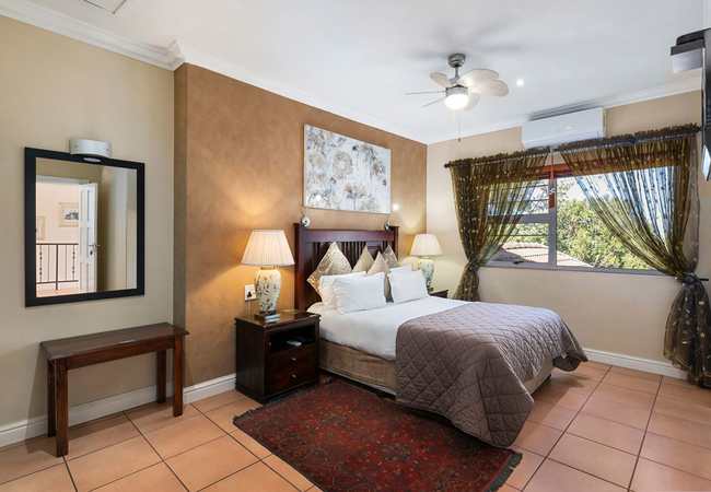 The Deluxe Queen Room is furnished with a Queen-size bed and has an en-suite bathroom with a shower. The well equipped room has a seating area, a flat screen TV with DStv / satellite channels, free Wi-Fi internet connection, air conditioning, a safe, tea and coffee (ground coffee with plunger included) and each room has its own private entrance.