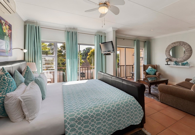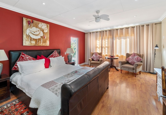 The spacious Superior King Room is furnished with a King-size bed and has an en-suite bathroom with a shower. The well equipped room has a seating area, a flat screen TV with DStv / satellite channels, free Wi-Fi internet connection, air conditioning, a safe, tea and coffee (ground coffee with plunger included) and each room has its own private entrance.