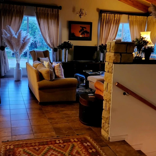 Relax on the sprawling deck with magnificent mountain views and central fireplace. Join us in the communal lounge with full DSTV and large fireplace or curl up with a book from the extensive library.