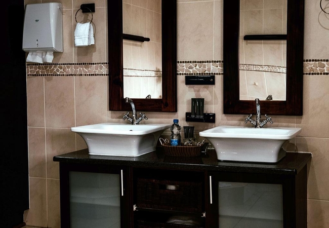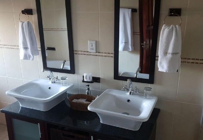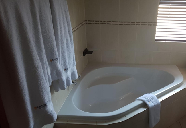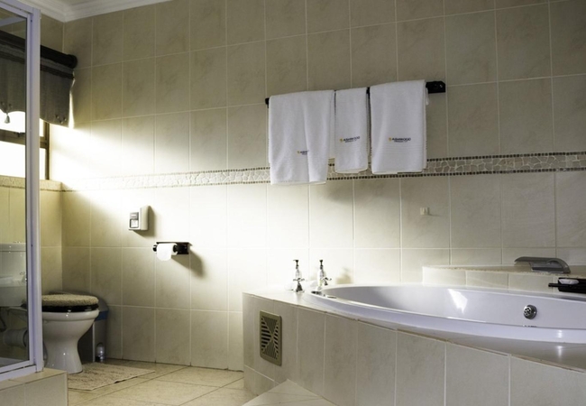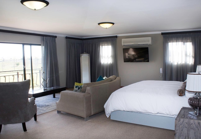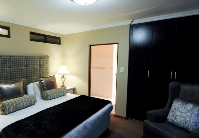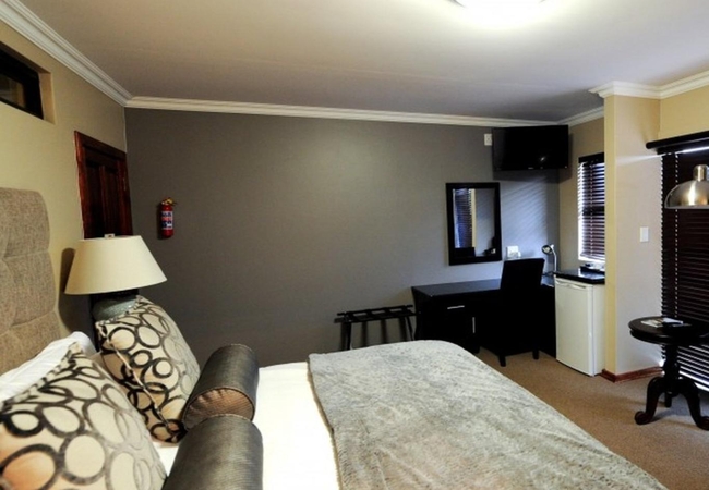 The Executive Suites are furnished with a King-size bed and have an en-suite bathroom fitted with a luxurious bath, shower, toilet and basin. Each room is equipped with Wi-Fi, DStv, a tea/coffee station, mini-bar, desk and chair and a private patio.