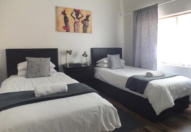 Twin room shared bathroom, ceiling fan and private safe. Each room is equipped with fans as well as individual secure lockers to keep your belongings safe while you explore all that Cape Town has to offer. There is a sparkling blue pool set within our private garden for you to make use of, as well as a poolside bar and braai (BBQ) where you can kick back, relax and just soak up the African sun.