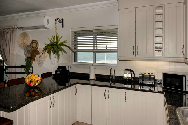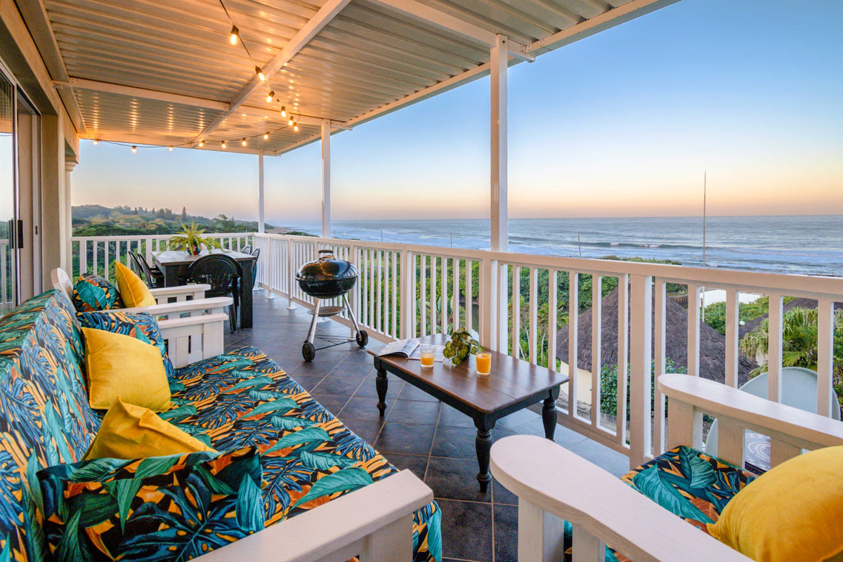 Outdoors, a spacious wrap-around balcony beckons with uninterrupted 180-degree sea views. Here, guests can enjoy relaxed alfresco meals, thanks to the comfortable seating and built-in braai facilities, while taking in the gentle sea breeze and rhythmic sound of the waves.
