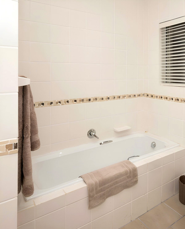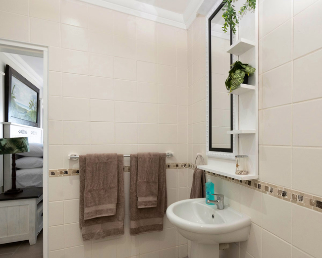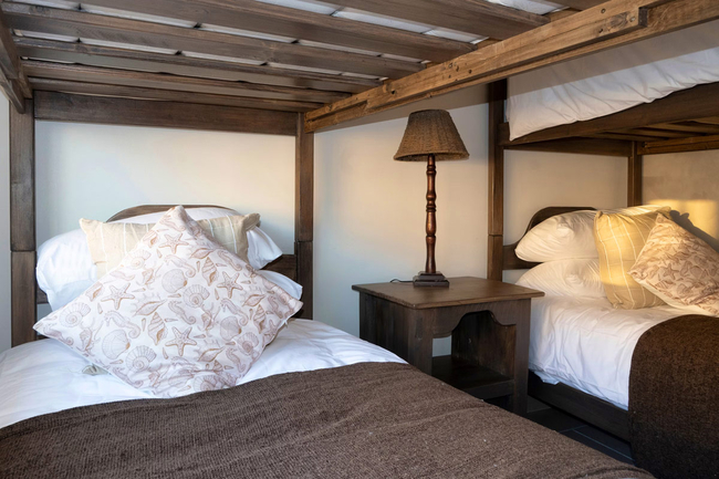 Perfect for children or additional guests, the third bedroom offers two bunk beds, with its en-suite bathroom featuring a bath, shower, basin, and toilet. Quality linen and bath towels are provided for convenience, though guests are kindly reminded to bring their own beach towels.