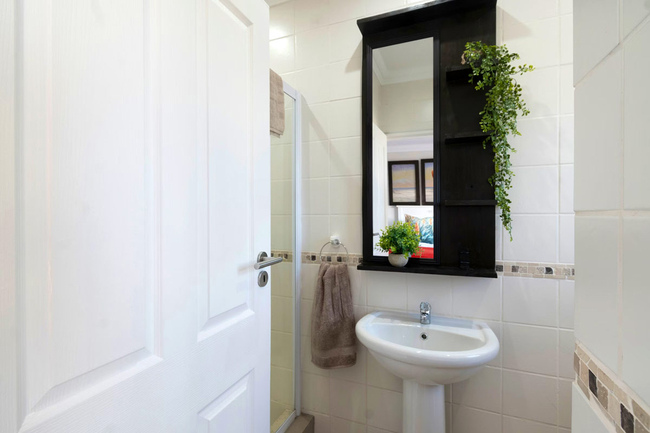 Designed to accommodate up to eight guests, the apartment comprises three comfortable bedrooms, each with its own private en-suite bathroom. The main bedroom features a queen-size bed and a bathroom equipped with a shower, basin, and toilet. The second bedroom is fitted with a double bed, while the adjoining bathroom also includes a shower, basin, and toilet.