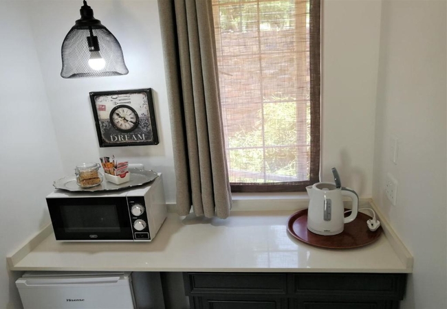 The Garden Suite is furnished with a Queen-size bed and the en-suite bathroom is equipped with a shower, hand basin, and toilet. The kitchenette is equipped with a microwave, a bar fridge, and tea and coffee making facilities. The suite is equipped with air-conditioning, a ceiling fan, a walk-in wardrobe, reading bedside lamps, and USB plugs.