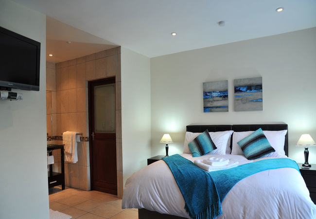 The Executive Room is furnished with top of the range King Size beds with the finest percale cotton linen and all season Duck Down duvets providing the finishing touch. The en-suite bathroom has a shower. To make your stay to be as comfortable as possible the following facilities have been provided in the rooms including 32 inch flat screen television, Mnet and selected DStv channels, Free WiFi, bar fridge, hairdryer with conveniently situated mirrors, ample cupboard space, electronic safe, radio alarm clock, tea and coffee facilities, under floor heating, key less access system, access to a microwave and secure off street parking,