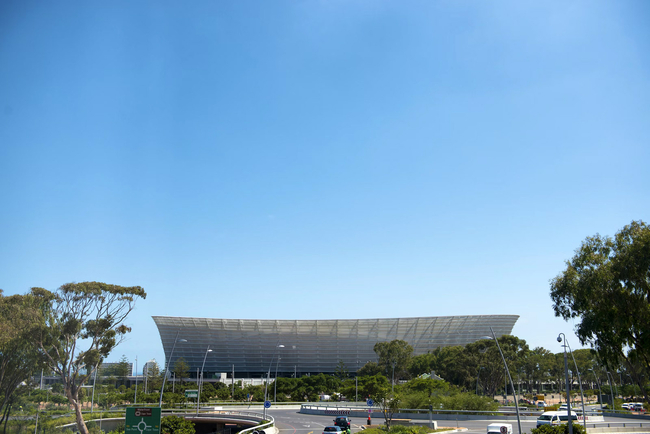 Outside on the balcony there are two chairs and a great view of the Green Point Stadium.