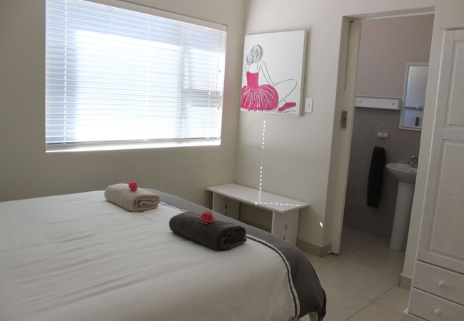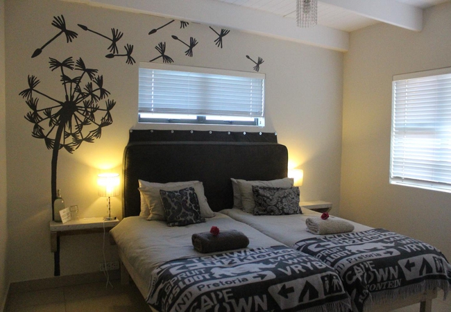 A double room that sleeps two (one double bed), situated on the first floor. The room consists of a private en-suite bathroom (shower and toilet). This room has a view to the sea and Table Mountain.
