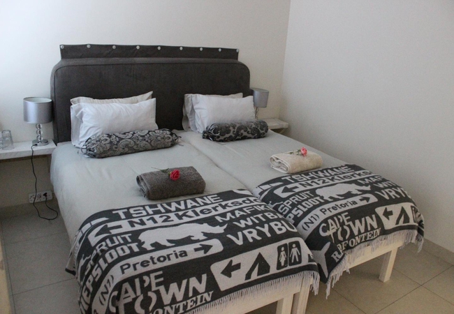 Phefo Private Budget Room is furnished with two single beds and is situated on the ground floor, shared bathroom facilities The modern bathroom is to be shared with the other budget bunk bed rooms and consists of 4 toilets, 4 showers and 3 wash basins.
