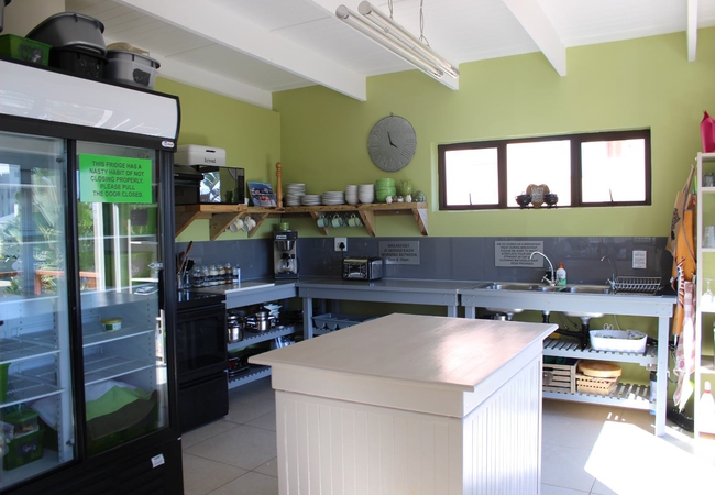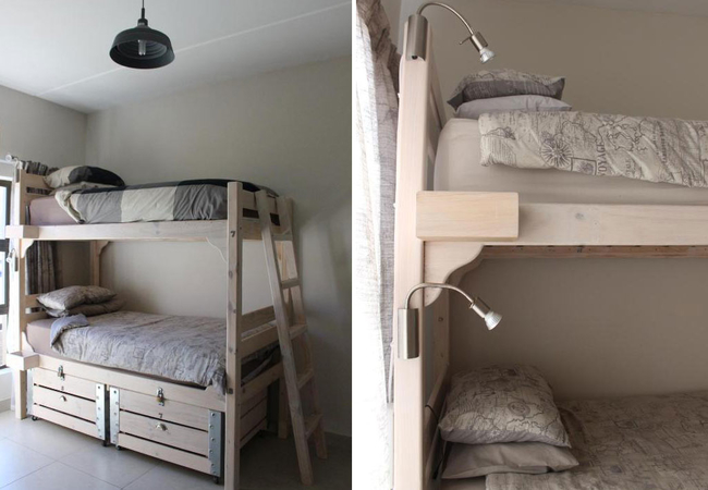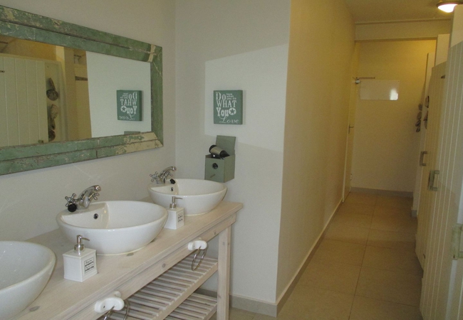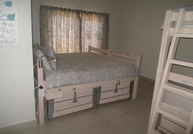 Please note: in Umoyo and Phefo the rate is per person per night. Keep in mind that if you do not book all the beds in the room, you could be sharing the room with others / strangers, as they are dormitories. Beds in communal dorms are assigned by @ Rosie's. The modern bathroom is to be shared with the other bunk bed rooms and consists of 4 toilets, 4 showers and 3 wash basins. The communal kitchen, dining room, lounge and outside area is also to be shared with other guests. There are 5 offside parking spots on the premises and surf gear can be stored in a lock-up gear box.