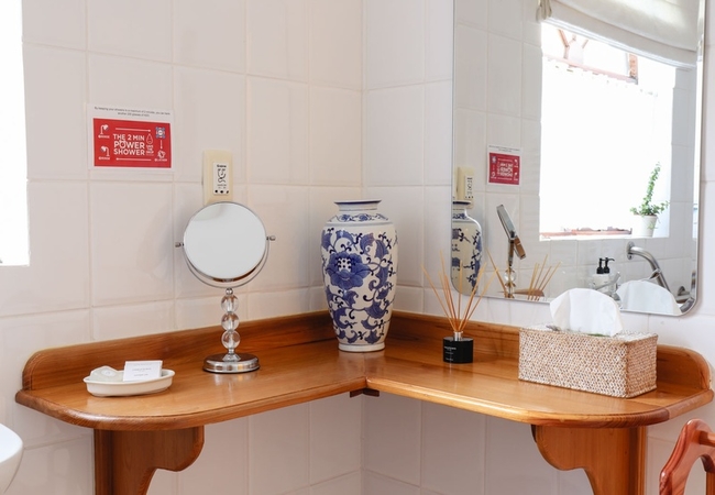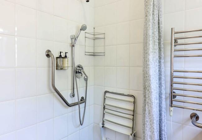 This ground floor suite has been specifically designed so that it not only meets the needs of able-bodied guests but also the accessibility needs of wheelchair users or physically disabled guests. The bathroom has a roll in shower. Each bedroom has a TV, bar fridge, heater, fan, tea tray, safe, toiletries and hair dryer. All bathrooms are equipped with heated towel rails and some under floor heating.