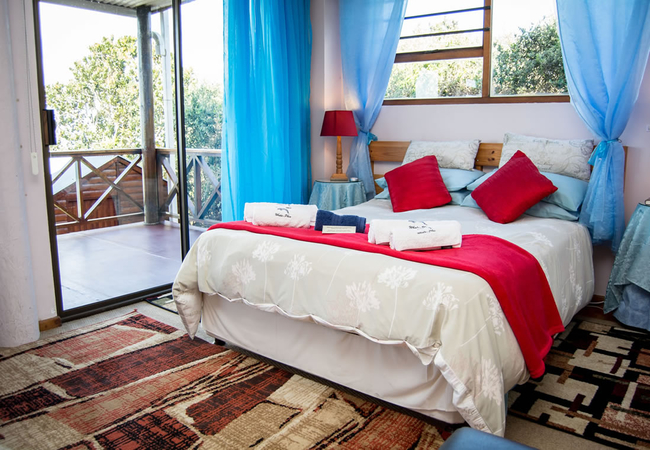 The Dolphin Room is furnished with a double bed. The en-suite bathroom is equipped with a shower over tub. Facilities in the room include TV and mini bar. Ocean view with direct exits to balcony and dining room. Serviced daily. Non-smoking. From your room, balcony or sundeck spot whales in season, dolphins frolicking the waves and plenty of garden birds all year round.
