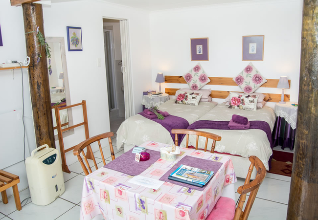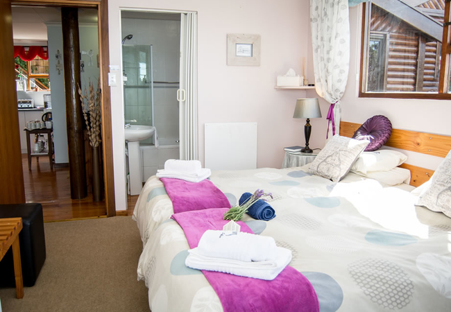 The Lavender Unit is furnished with twin beds (two singles). It has a fully equipped kitchenette for self-catering. The en-suite bathroom is equipped with a shower. The unit has a private garden entrance and overlooks the ocean. Non-smoking. From your room, balcony or sundeck spot whales in season, dolphins frolicking the waves and plenty of garden birds all year round.