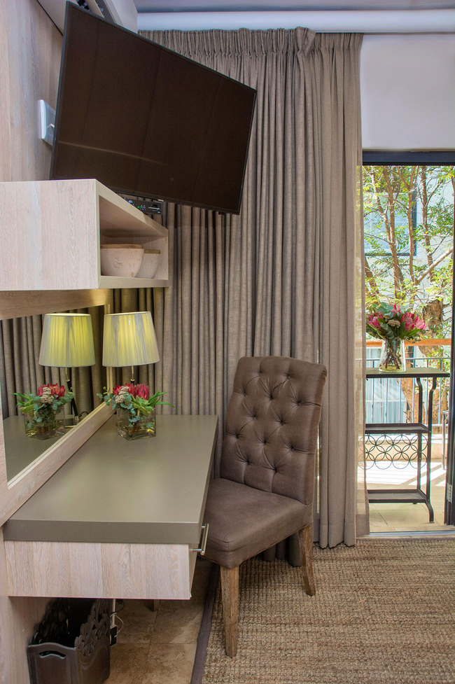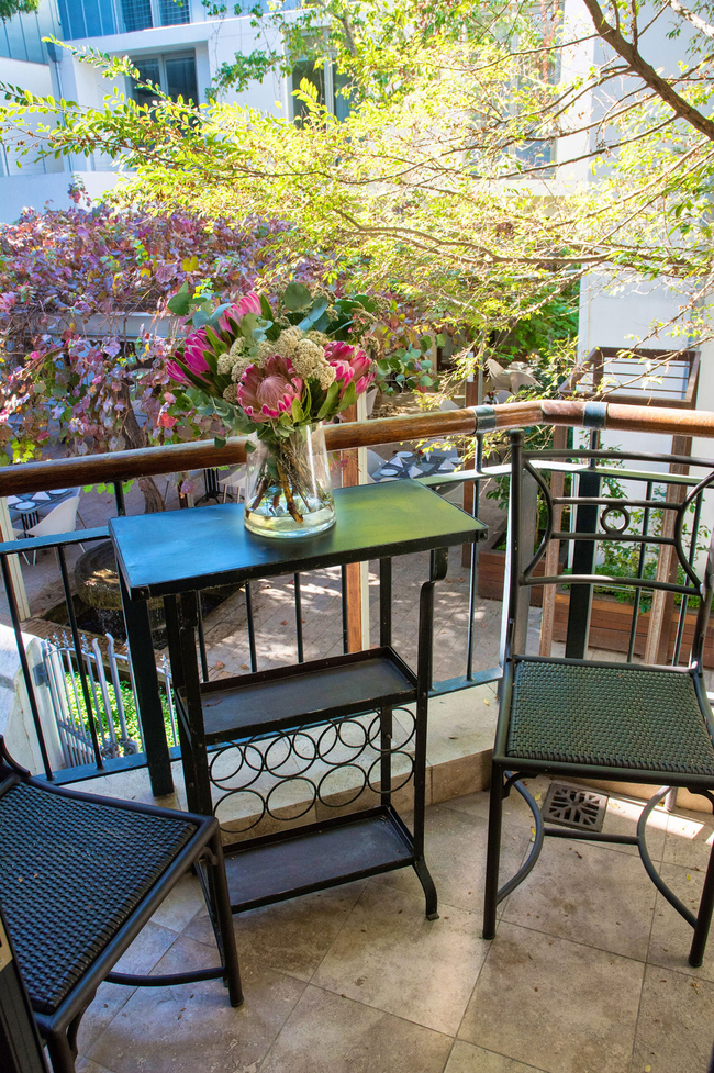 This elegantly designed 28 sqm apartment comfortably accommodates one to two guests, providing a fully furnished and equipped self-catering experience. The air-conditioned space includes a contemporary bathroom and a private balcony, all situated within the vibrant and historic centre of Stellenbosch, just 600 metres from Stellenbosch University.