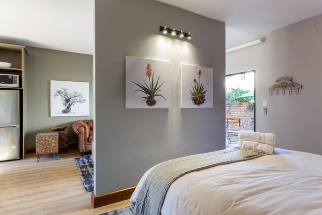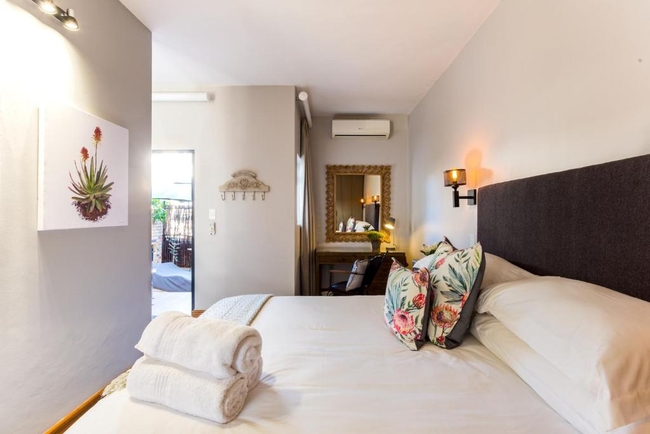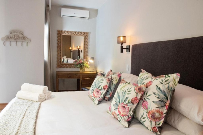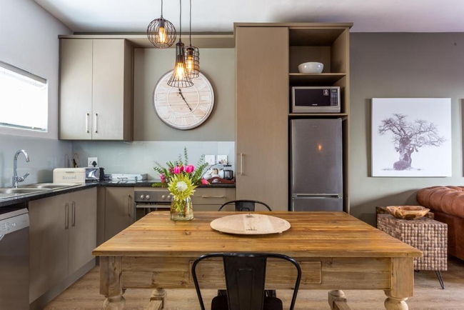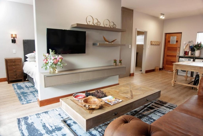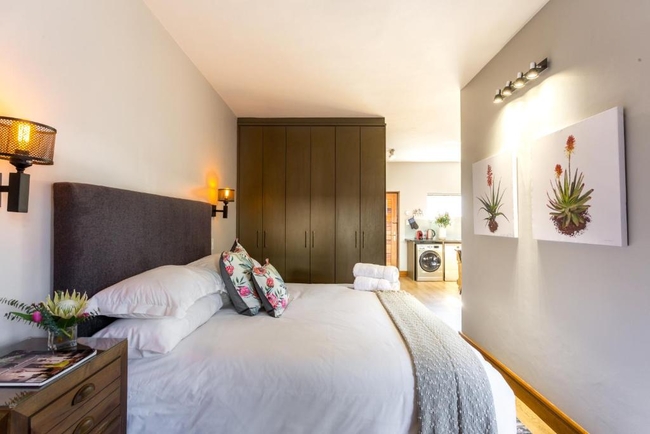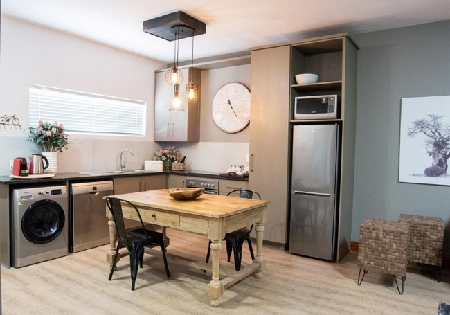 This self-catering apartment is ideal for 2 guests, featuring a luxurious king-size bed and a well-appointed bathroom. The spacious lounge and dining area are tastefully decorated with modern furniture, providing a comfortable space to relax. The fully equipped kitchen includes a dishwasher, washing machine/dryer combo, Nespresso machine, gas hob, and everything you need for a memorable stay. A Victron backup system ensures a pleasant experience during load shedding, and air conditioning adds to your comfort. Guests can also enjoy their own Netflix account on the TV. Step outside to your private courtyard garden, where shady trees, lounger chairs, and a Weber braai create the perfect setting for unwinding on a relaxing day at home. Free secure parking for one car behind an electric gate is a great bonus in Stellenbosch. For families, we offer a cot, baby chair, and baby bath upon request.