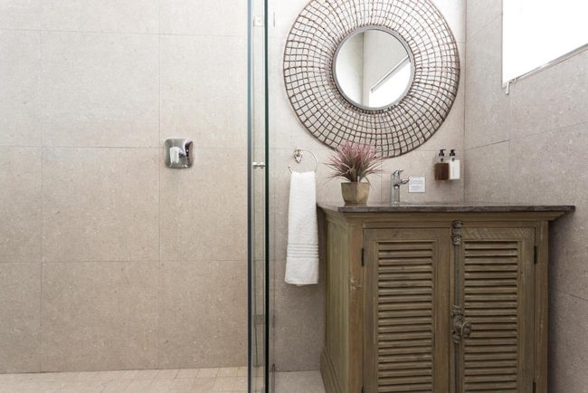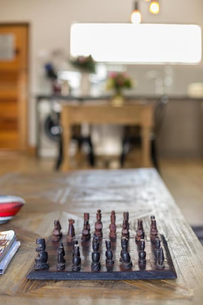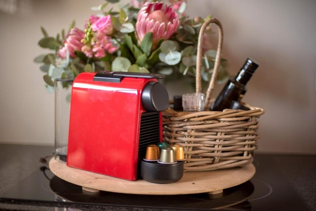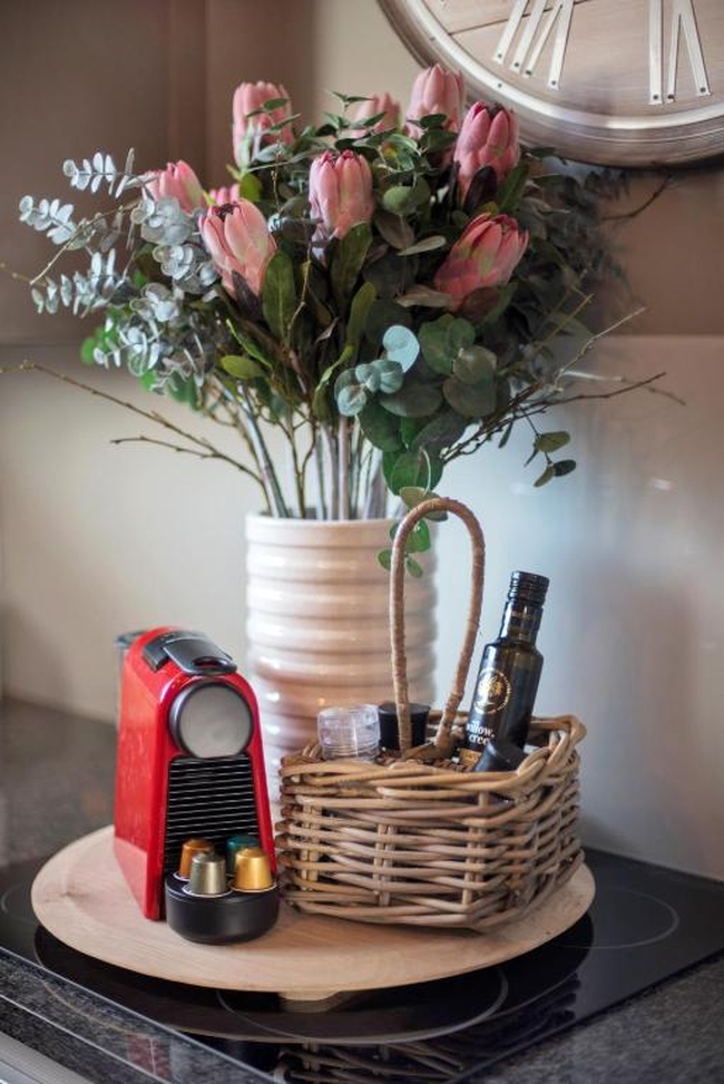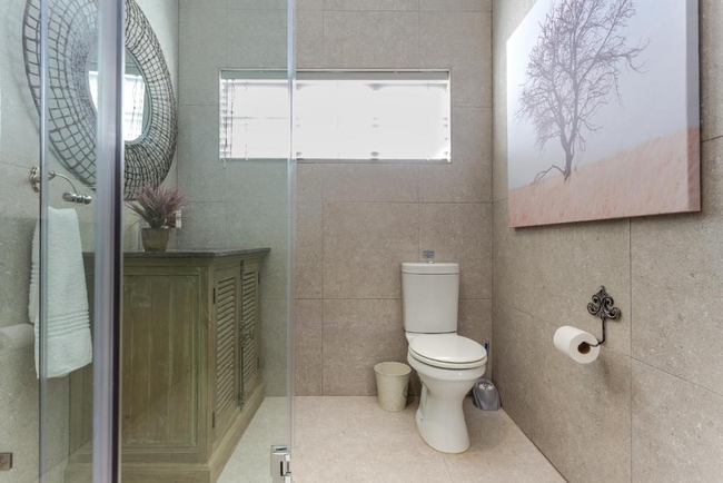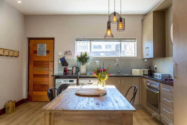 The kitchen is fully equipped with modern conveniences, including a dishwasher, a washing machine/dryer combo, a Nespresso machine, and a gas hob. Whether you're preparing a casual meal or an elaborate dinner, everything you need is at your fingertips. The Victron backup system ensures uninterrupted comfort during load shedding, while air conditioning provides additional ease. Guests can also enjoy their own Netflix account via the TV.