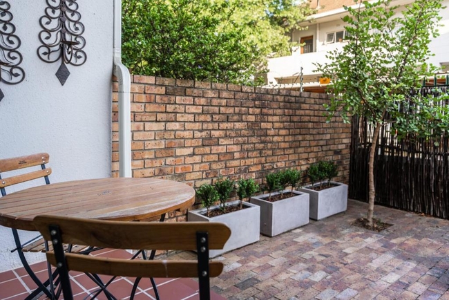 Step outside to your private courtyard garden, a serene space with shady trees, comfortable loungers, and a Weber braai—ideal for a laid-back afternoon at home. Secure parking for one vehicle behind an electric gate offers an added layer of convenience in Stellenbosch.