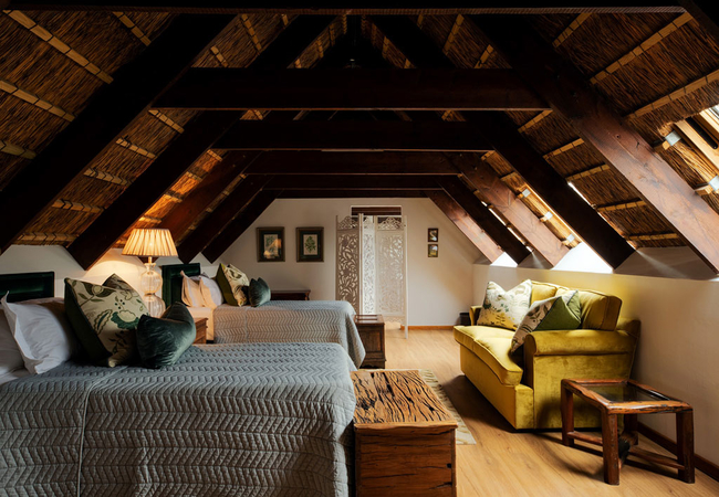 The Family Suite has two bedrooms each furnished with a King-size bed. There is an en-suite bathroom with a shower and bath, hand basin and WC. The suite has views of the mountain, pool and garden. French doors lead out onto the terrace. Free Wi-Fi and tea / coffee facilities are provided.