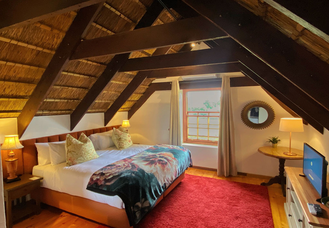 The Luxury Room is furnished with an extra length King-size bed. The en-suite bathroom is fitted with a bath, hand basin and WC. Free Wi-Fi and tea / coffee facilities are provided. This luxury room has views of Table Mountain and the garden.
