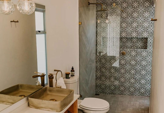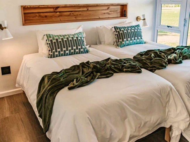 Back 9 is a holiday home in Robertson with four double en-suite rooms furnished with a King-size bed, Queen-size bed and two rooms with twin beds. The en-suite bathrooms are fitted with a bath, shower, toilet and basin.