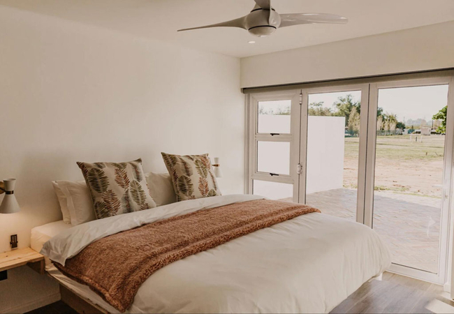 Back 9 has four double en-suite rooms furnished with a King-size bed, Queen-size bed and two rooms with twin beds. The en-suite bathrooms are fitted with a bath, shower, toilet and basin. The fully equipped kitchen has a gas hob, fridge and tea and coffee facilities. Relax in the lounge and dining area with big glass sliding doors that open onto a beautiful patio, offering stunning views of the estate. The outdoor braai area offers great options for entertaining, while the swimming pool provides a front-row seat overlooking the tee box. Back 9 is equipped with an inverter in order for the lights, Wi-Fi and TV to operate during loadshedding. We have a gas hob for coffee etc. during load shedding.