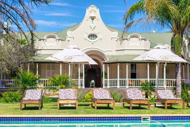 A short and picturesque 5-minute drive from the heart of Oudtshoorn, in the fertile Elephants River Valley, brings you to Bakenskraal Ostrich Palace. Originally surveyed and proclaimed in 1843, this historic farm has been thoughtfully restored and elegantly refurbished by the Keller family. Today, it offers guests a refined taste of country living in the captivating landscape of the Klein Karoo.