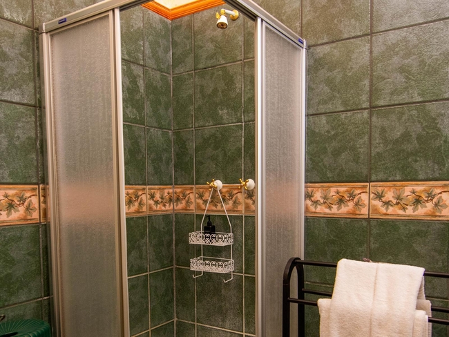 This spacious and comfortable triple room is furnished with both a single bed and a large double bed—highly rated for comfort, with an impressive score of 8.8 from 32 guest reviews. The room features air-conditioning, parquet and tiled flooring, and a private entrance, creating a cool and welcoming retreat. Guests can enjoy a seating area with a flat-screen TV offering satellite channels, as well as a tea and coffee station complete with an electric kettle. The private bathroom includes a walk-in shower, toilet, hairdryer, and complimentary towels and toilet paper. Additional amenities include heating, a safety deposit box, a clothes rack, a drying rack for clothing, a wake-up service, and easily accessible power sockets near the beds. Situated on the ground floor, the room offers a tranquil garden view and single-room air conditioning for personalized comfort.