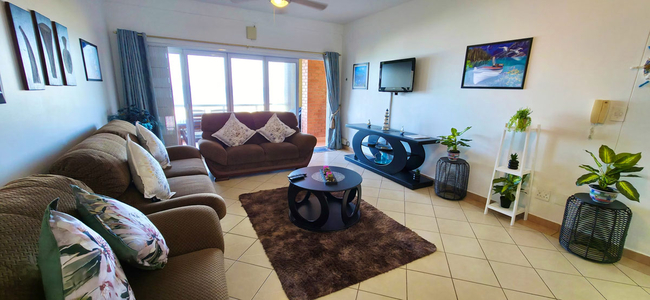 Balooga 13 offers a stylish and comfortable self-catering retreat in Lawrence Rocks, Margate. Its enviable position on the beachfront allows guests to enjoy uninterrupted views of the ocean and the calming sounds of the waves. The apartment accommodates up to six guests, making it a perfect option for families or groups seeking a relaxing seaside escape. The main bedroom is furnished with a double bed and includes an en-suite bathroom complete with a shower, bath, toilet, and basin. The second bedroom features a double bed, while the third bedroom contains two single beds, with both rooms sharing a fully equipped bathroom that includes a shower, bath, toilet, and basin. The kitchen is designed for convenient self-catering and comes equipped with a stove, oven, fridge-freezer, microwave, cutlery, and crockery. The open-plan lounge combines a dining area, comfortable seating, and a television, creating a welcoming space for relaxation and socialising. Whether guests wish to spend their days sunbathing on the beach, exploring the local attractions, or simply enjoying the tranquillity of a seaside setting, Balooga 13 provides an ideal holiday environment.