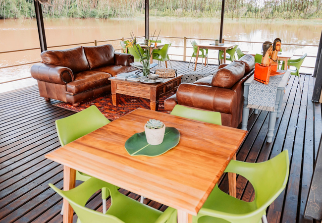 Bambuu Lakeside Lodge sits on the bank of a lake, surrounded by fauna and flora on a farm in Kiepersol near Hazyview. This is a tranquil place to base yourself while exploring the many nearby attractions including the Kruger National Park, the Blyde River Canyon, Bourkes Luck Potholes and the Kadishi Tufa Waterfalls.