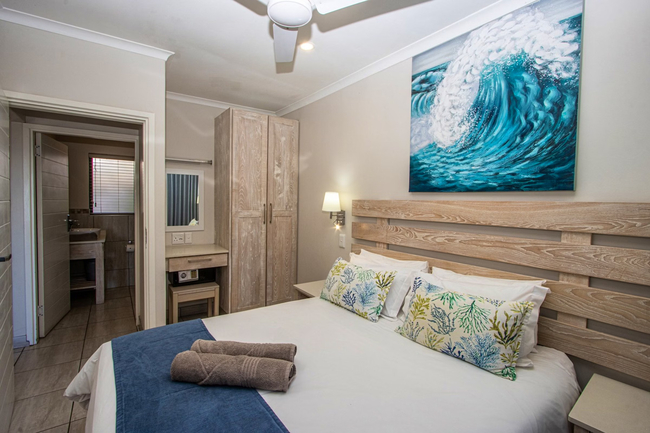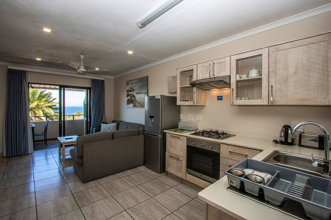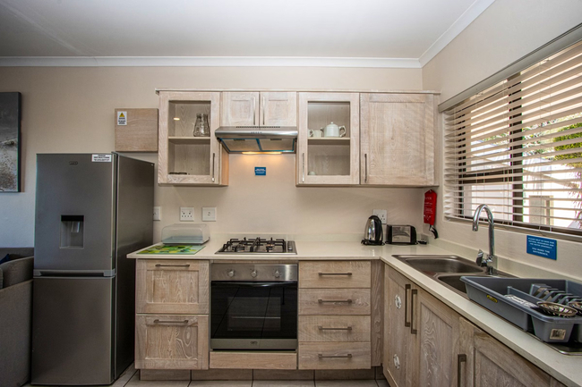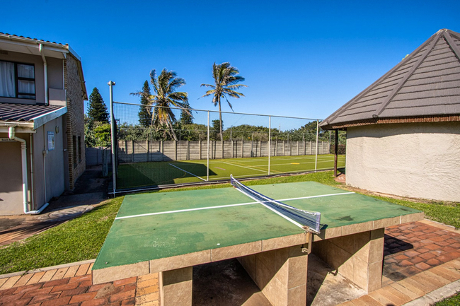 Banana Beach Club E3 is a charming self-catering chalet located on the first floor in Melville, nestled along the popular Hibiscus Coast, conveniently positioned between Hibberdene and Port Shepstone. Just 50 meters from the beach, it offers direct access via a boardwalk, making it an ideal choice for a family getaway. Accommodating up to 2 adults and 2 children, this unit features a comfortably furnished en-suite bedroom with a double bed, and a bathroom equipped with a shower. Linen and bath towels are provided for your convenience. The kitchen is fully equipped for a hassle-free stay, featuring a 4-plate gas stove, oven, microwave, kettle, toaster, cutlery, crockery, and a fridge-freezer. The lounge area includes a comfortable sleeper couch suitable for children, along with a TV connected to a Smart Box. Guests are kindly asked to bring their own login details for streaming services available through the Smart Box. Free Wi-Fi is also available throughout the unit. Step outside to a covered patio, which includes a built-in braai and outdoor seating, perfect for enjoying the fresh air. Guests have access to a variety of shared amenities, including two communal swimming pools, a trampoline, a jungle gym, a volleyball court, and a putt-putt course. Covered parking is provided for your convenience, and there is an on-site laundromat available for a minimal fee.