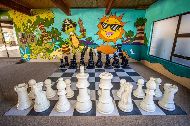 Step outside to a covered patio, which includes a built-in braai and outdoor seating, perfect for enjoying the fresh air. Guests have access to a variety of shared amenities, including two communal swimming pools, a trampoline, a jungle gym, a volleyball court, and a putt-putt course. Covered parking is provided for your convenience, and there is an on-site laundromat available for a minimal fee.