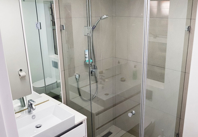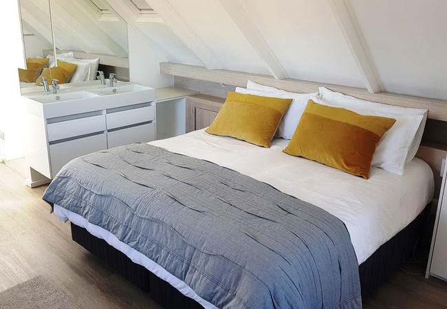 The main bedroom is furnished with a king-size bed and an en-suite bathroom fitted with a shower, toilet and basin. The second bedroom is furnished with a double bed and has an en-suite bathroom fitted with a shower toilet and basin. The third bedroom is furnished with a queen-size bed and has access to a separate bathroom with a shower, toilet and basin.