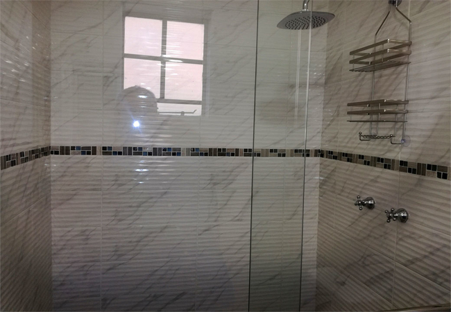 The bedroom consists of a double bed and the bathroom is fitted with a large shower, toilet and a basin. Bed linen and bathroom towels are provided.