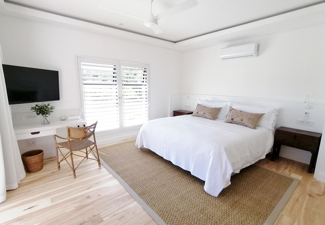 Six white on white, light filled compact Standard Rooms overlook the valley behind Barrington's. The rooms feature pristine linens and locally produced organic amenities ensuring an indulgent stay. The rooms have a a King-size bed which can be converted into two single beds. There is a balcony with lovely, comfortable seating. All the rooms have en-suite bathrooms with showers, flat screen HD tv with satellite channels, free Wi-Fi, air conditioning and fan.
