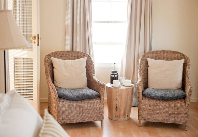 The Disa room is furnished with a King-size bed and boasts and en-suite bathroom with a shower fitted in the Victorian style bath. The room has French doors opening onto the verandah. Finishes everywhere are luxurious and stylish, with crisp cotton bedding and elegant fabrics. Our own toiletries add a special touch to the Victorian-style bathrooms.