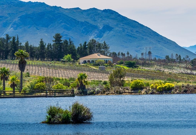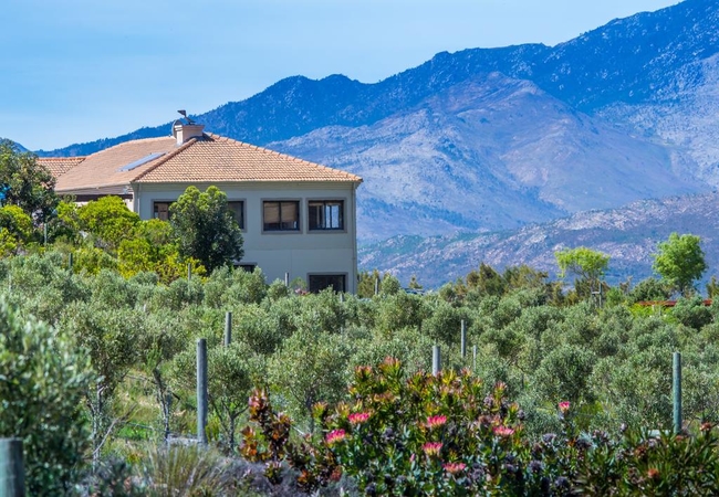 Barton Farm, with its luxury villas (5 Tuscan style self-catering holiday villas), is located near Botriver in the heart of the Kogelberg National Park. The farm is just one hours' drive from Cape Town and twenty minutes drive from Hermanus. The views from the villas are of the surrounding mountains, our vineyards, olive groves and lavender fields to Walker Bay. The villas provide a perfect base from which to explore the Western Cape.