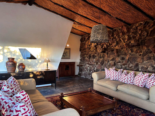 Stone Cottage is a cosy self-catering cottage built from the stone found in the environment. The cottage has a spacious open-plan layout, which includes a lounge, kitchenette and sleeping area with a double bed and one single bed. It is fully equipped for self-catering with linen and towels, crockery, cutlery, braai utensils and basic electrical appliances including a microwave oven and kettle. The living area opens up onto a veranda with a panoramic view across the reserve and the Waterberg mountains in the distance; a perfect setting for sundowners before the evening braai. The en-suite bathroom has a shower, as well as a bathtub with a window from where visitors may see a giraffe nibbling the leaves of a nearby tree, a herd of impala or an inquisitive gecko peeping through the window. The cottage is wheelchair friendly with a ramp and an “open” shower to allow for easy access.