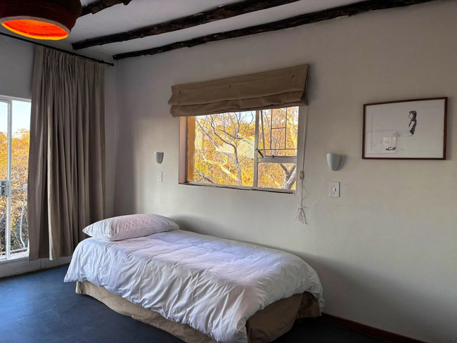 Vaalboom Cottage is a comfortable three sleeper for the budget conscious couple. It is fully equipped for self catering and is furnished with a double bed and a single bed. The separate bathroom has a shower. All linen, crockery, cutlery and electrical kitchen equipment is provided. It has an outside braai (barbecue) area and a lovely view across the Savannah and the Waterberg Mountains in the distance.
