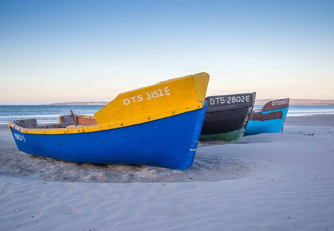 Paternoster is an all year round destination famous for its traditional fisherman's architecture, endless pristine beaches, whales and dolphins, sea birds, breathtaking sunsets, foghorn, adventure activities and millions of indigenous flowers which open and densely carpet the earth in bright bursts of colour in springtime. You'll see fishermen with their daily catch, locals offering ‘crawling' crayfish in season and delicious seafood is the specialty in the restaurants. It is home to a variety of small mammals and more than 250 species of birds with the Oyster Catcher using this coastline as their breeding ground.