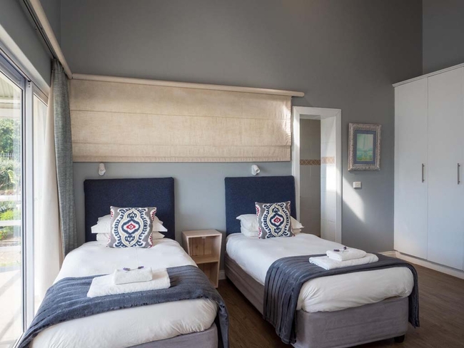 Functional twin bedded room overlooking the lawn with a sunny terrace and patio furniture. En suite bathroom with shower facility. Room amenities include:electronc safe, heater, tv, hairdryer, coffe and tea making facilitues & distilled water apon arrival