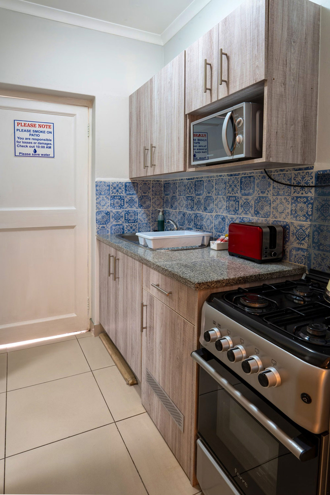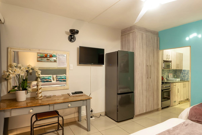 All units are fully serviced and supplied with complimentary tea and coffee, soap, bath towels and linen. Each unit has an en-suite bathroom with a bath, shower and toilet. A kitchenette with crockery and cutlery, pots and pans etc for three persons are also supplied. There is a microwave, two plate stove with a small oven and a fridge. We have TV with DSTV.