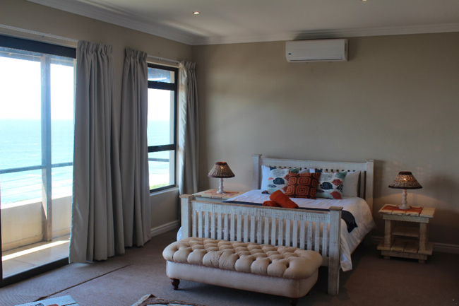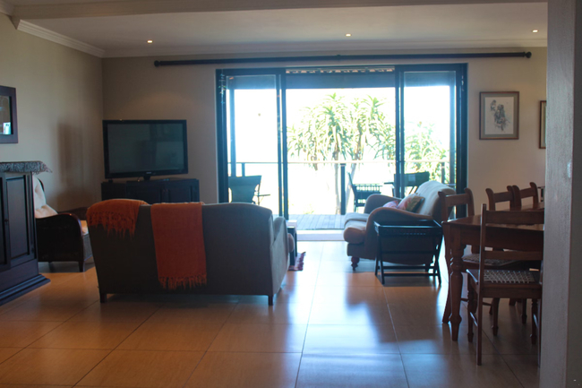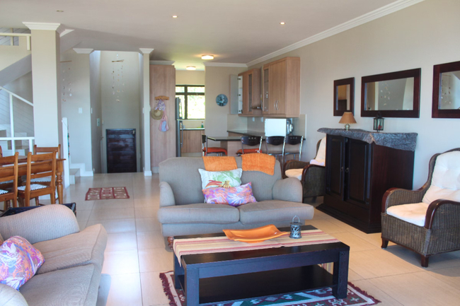 Nestled within the Sovereign Sands beachfront complex in Blythedale, 6 Sovereign Sands is a spacious, self-catering apartment designed to comfortably host up to six guests. The apartment features three bedrooms, each with its own en-suite bathroom. The main bedroom offers a king-size bed and an en-suite bathroom with a bathtub, shower, and toilet. The second and third bedrooms are each furnished with double beds and en-suite bathrooms fitted with showers and toilets. Fresh linens and towels are provided for guest convenience. The open-plan kitchen is fully equipped with a stove, oven, microwave, refrigerator, cutlery, and crockery, along with tea and coffee-making facilities. Guests can enjoy meals at the breakfast bar or the eight-seater dining table. The lounge area is appointed with comfortable seating and a TV, leading out to a balcony with views of the surrounding area and ocean. Additionally, a double garage is available for guest use. Guests can enjoy the complex's communal swimming pool and direct beach access, perfect for leisurely strolls, swimming, or watching whales and dolphins in season. The estate is also ideal for bird-watching enthusiasts.